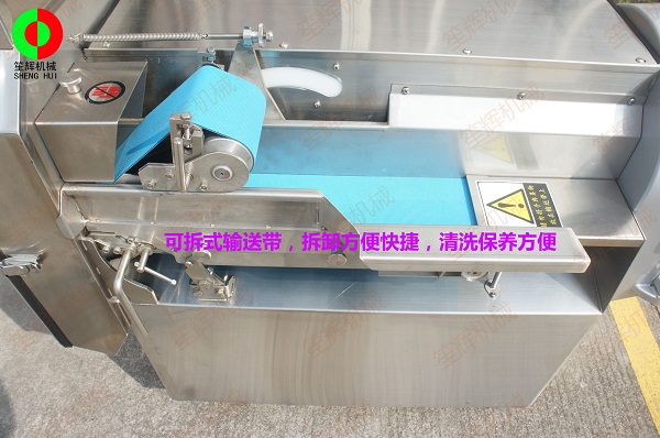 切菜機(jī)一般為雙頭型切菜機(jī),雙頭可同時(shí)工作。通過(guò)更換刀盤(pán)或雙調(diào)頻調(diào)節(jié)輸送帶與斬刀速度,可切出各種規(guī)格的片、絲、丁、條、粒。功能比較多、一機(jī)多用、省時(shí)省力、一機(jī)能當(dāng)作多人的工作量。整機(jī)板材采用全不銹鋼制造,衛(wèi)生、美觀、久用,變頻調(diào)速簡(jiǎn)單直接。清洗比較方便、沒(méi)有衛(wèi)生死角。