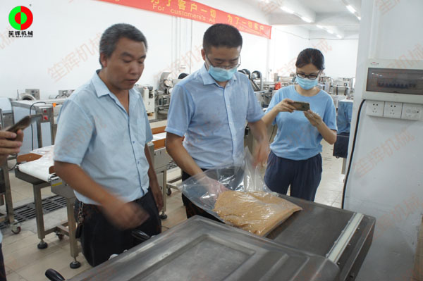 東莞客戶一行考察我司生產(chǎn)工廠,測(cè)試購買真空包裝機(jī)!