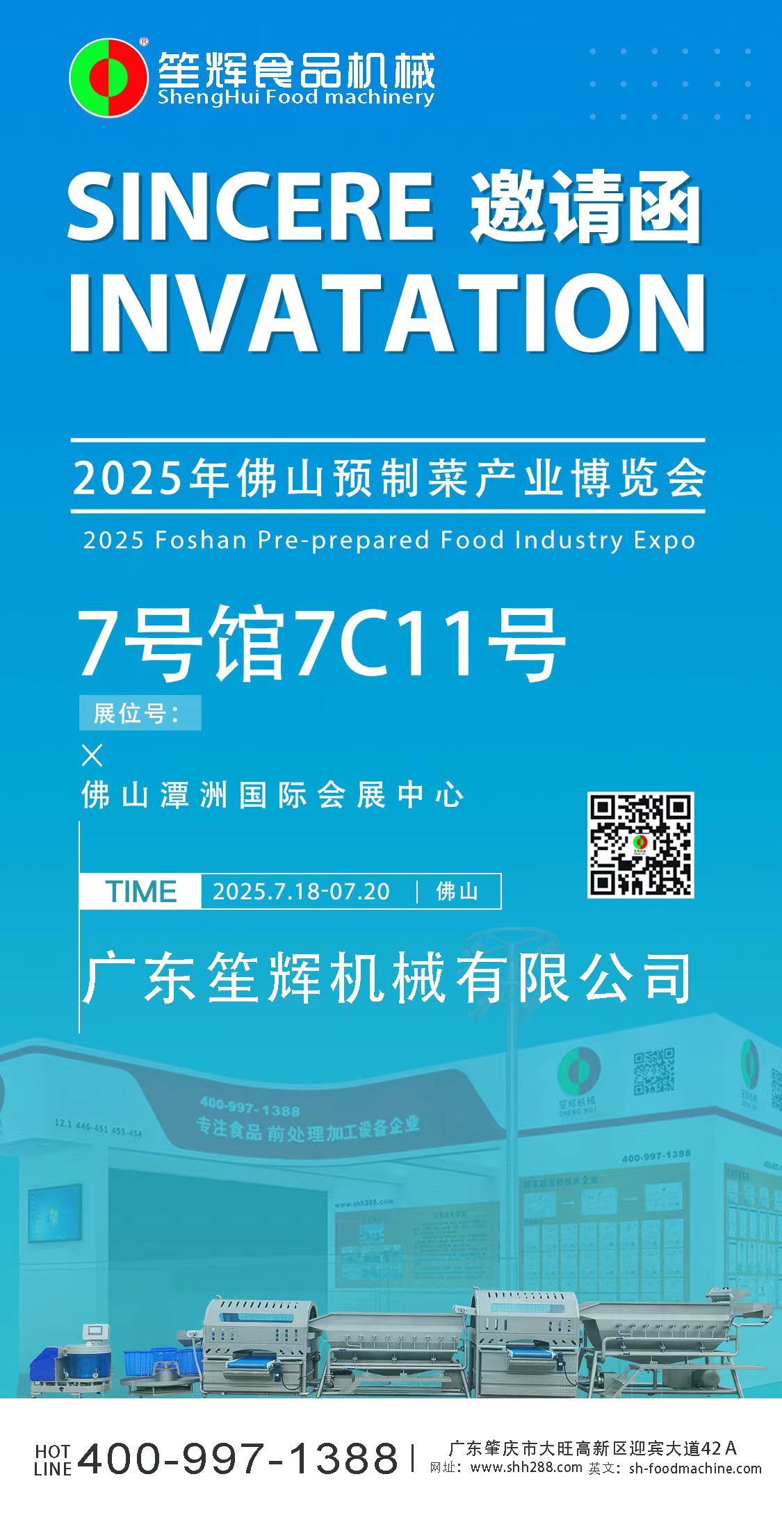 佛山預(yù)制菜產(chǎn)業(yè)博覽會將于7月18日至7月20日在佛山潭洲國際會展中心舉行,屆時(shí)我們在7號館7C11號展位將展出部分類型設(shè)備,歡迎各位新老客戶參觀洽談。