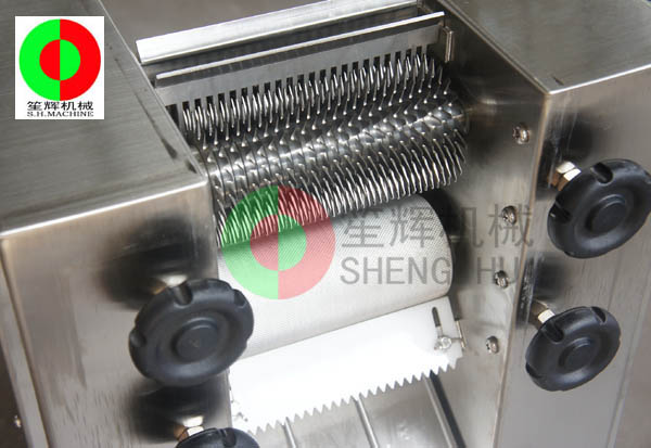 - 產(chǎn)品優(yōu)勢: 用途:用于豬肉,牛肉,羊肉片增大,松開肉筋,使肉片賣相好,口感好。機器原理:1.通過上層刀組,不銹鋼帶齒壓輪,帶齒設(shè)計,能有效放大肉片尺寸及松肉效果。2.通過下層刀組,斷筋部分,能刺穿肉片,增強嫩化及松肉效果。